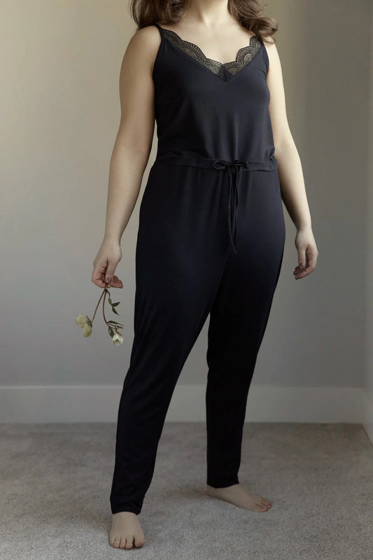 Georgina' Drop-Crotch Jumpsuit - Black Beauty