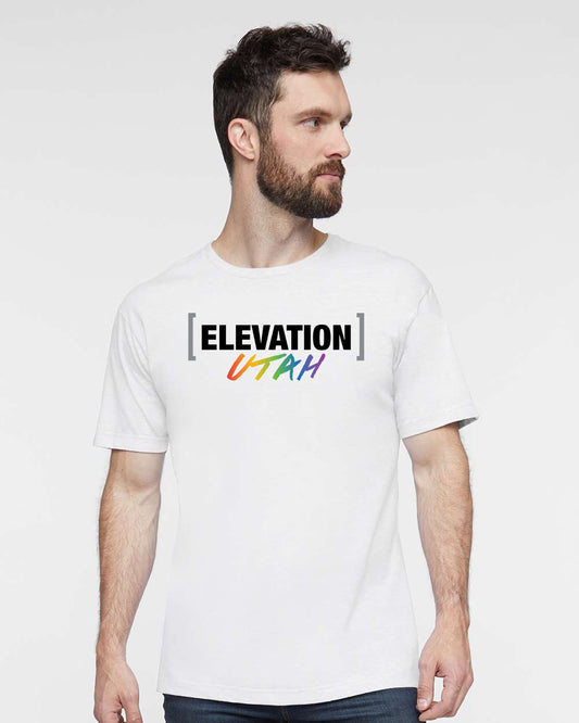 T-Shirt with Elevation Mammoth Rainbow Script front