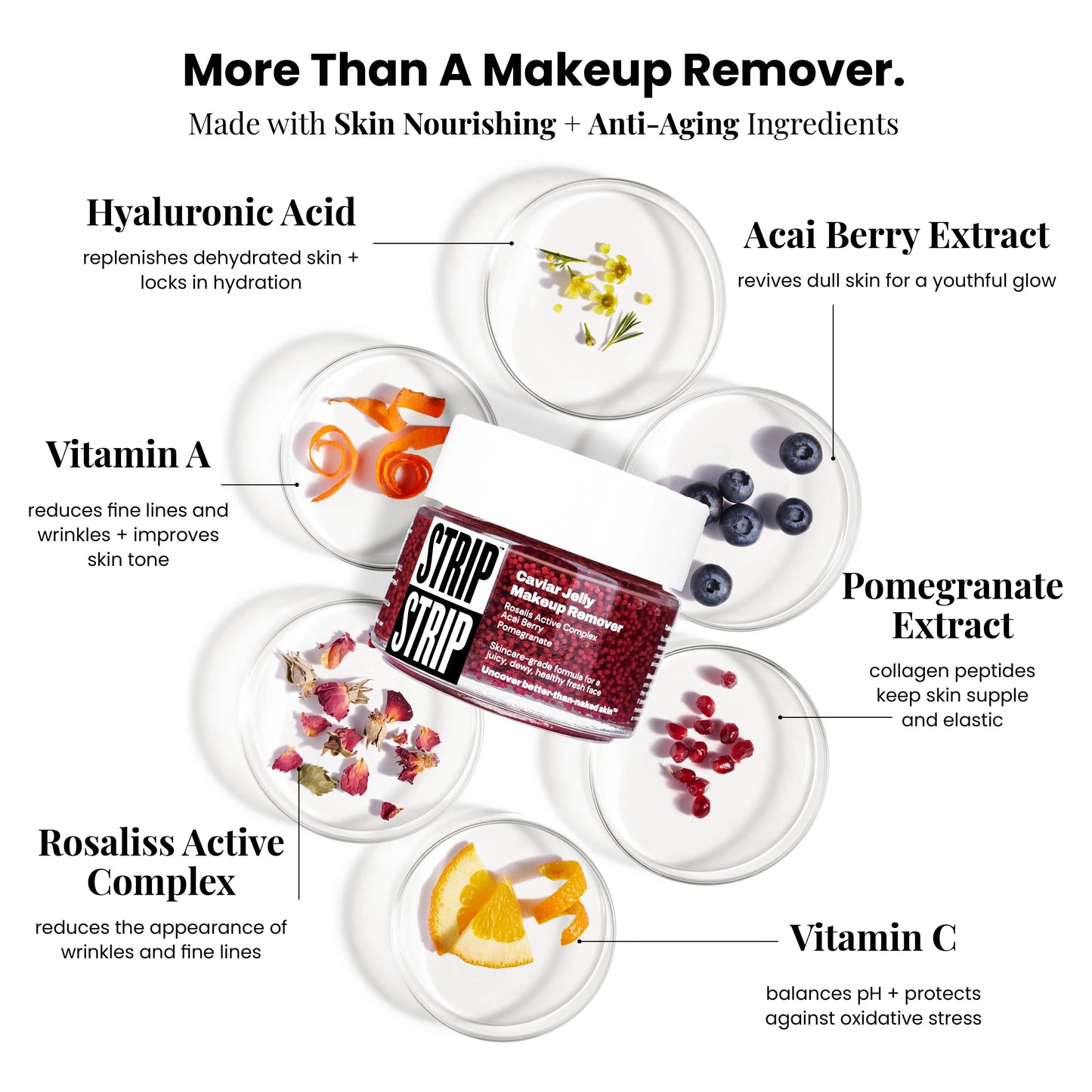 The first ever cleanser with clinically proven anti-aging benefits. Designed with biphasic, microfluidic technology developed at Harvard, our Caviar Jelly Makeup Remover is formulated to reduce all visible signs of aging. Hydrate, balance pH, restore elasticity and reduce fine-lines all while melting away dirt, makeup and impurities.