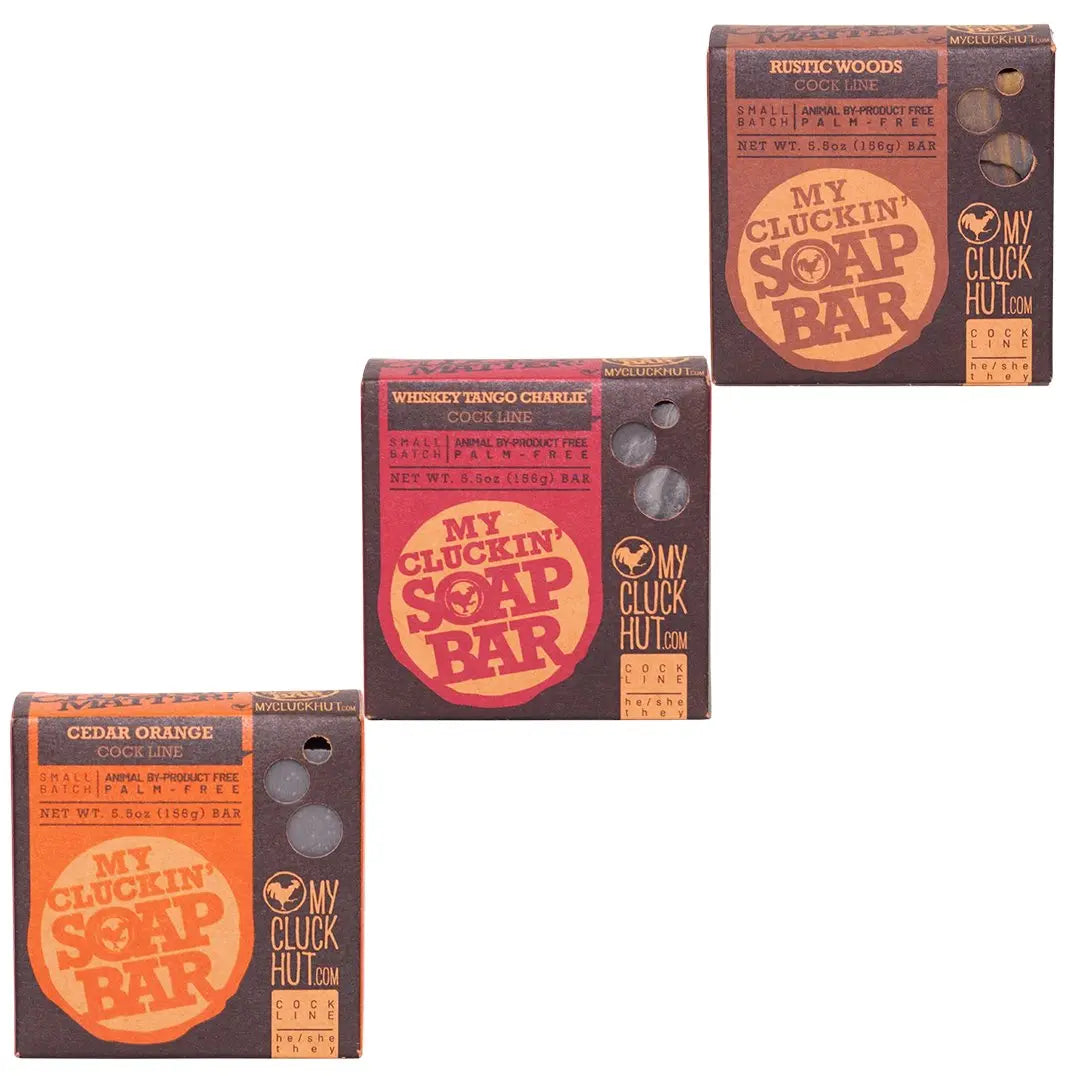 Why a Cluckin’ Bundle? Besides saving 10%, which is awesome, you get to cycle through 3 of our best selling soap bars at your leisure!