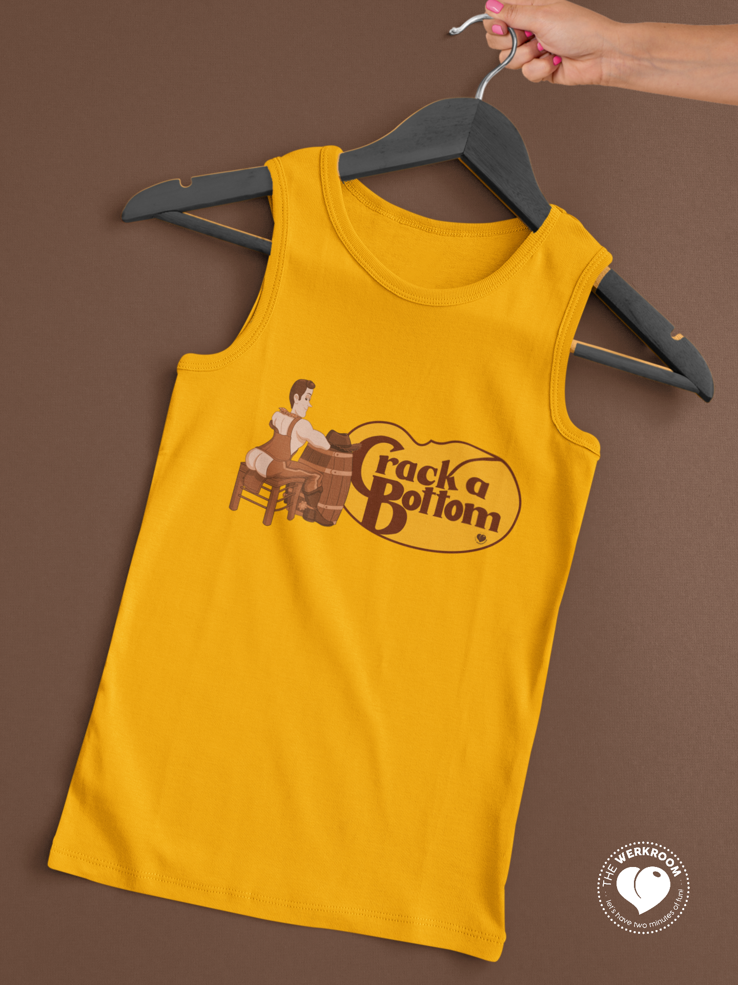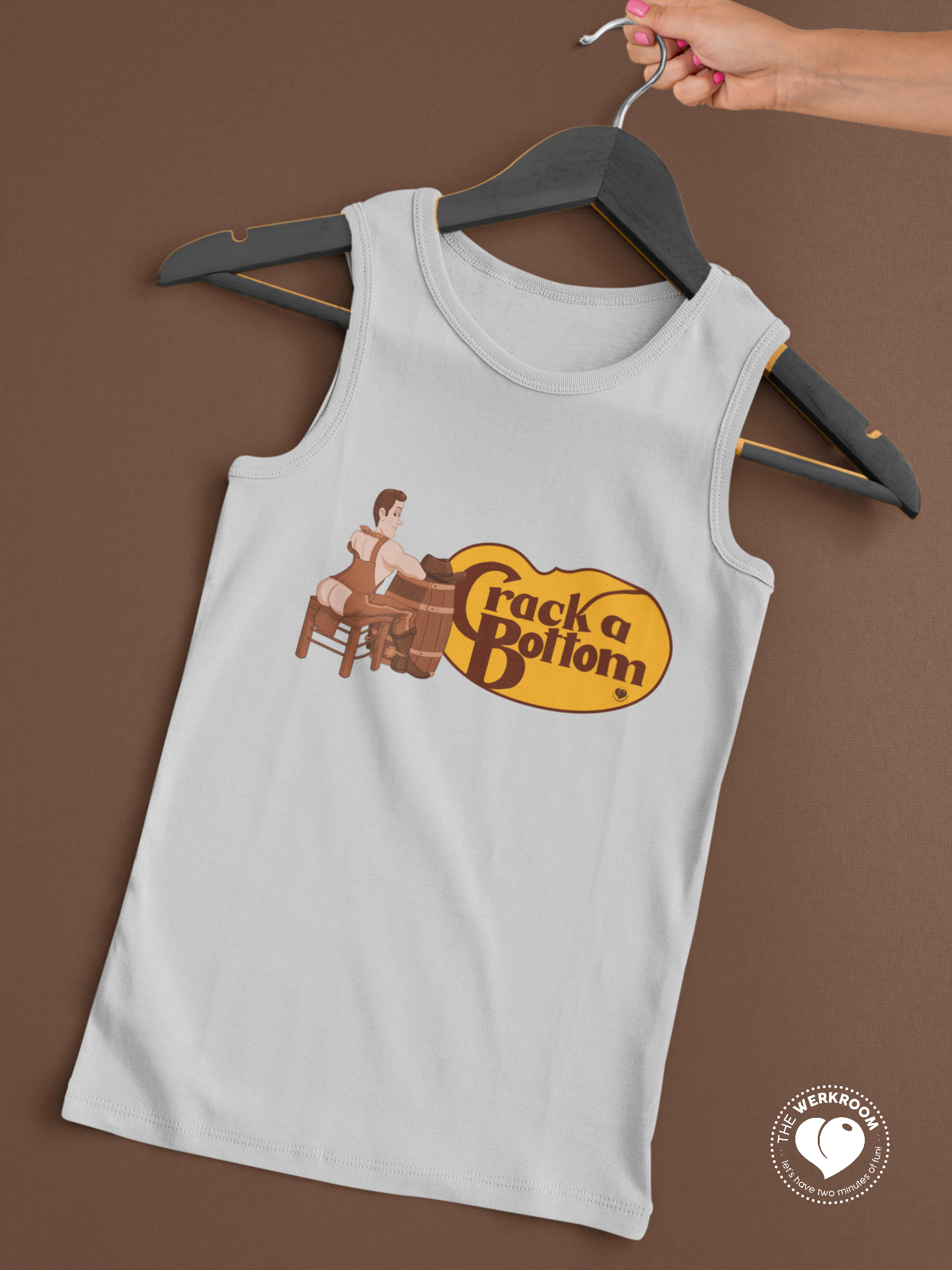 Slip into something a little more scandalous than brunch biscuits. The Crack a Bottom tank is Werkroom’s playful clapback to anti-LGBTQ+ outrage over Cracker Barrel’s logo flip-flop.