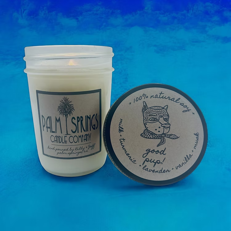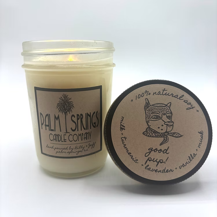 Who's been a good pup? Get ready to have your tail wagging like crazy! Palm Springs Candle Company proudly presents Good Pup! Relax with milk, lavender and vanilla while turmeric and musk play hide and seek with your senses. You're gonna want to eat this one up! Sit, stay, click 'buy'! Sniff out the top-notch artisan craftsmanship our candles are "hounding" about.🐾