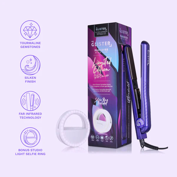 In our exclusive Limited Edition Set, the Paradise Flat Iron pairs with a Studio Light Selfie Ring.