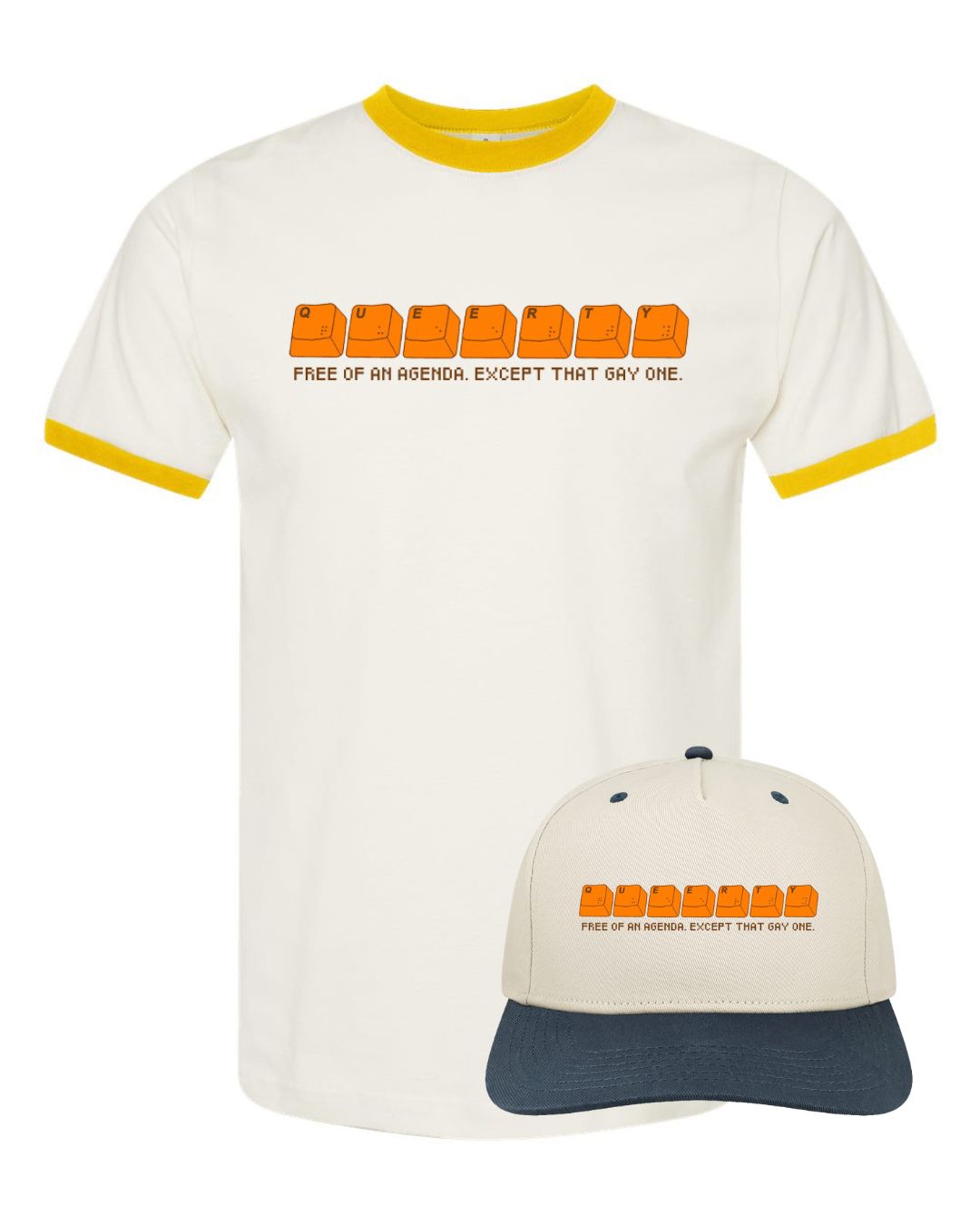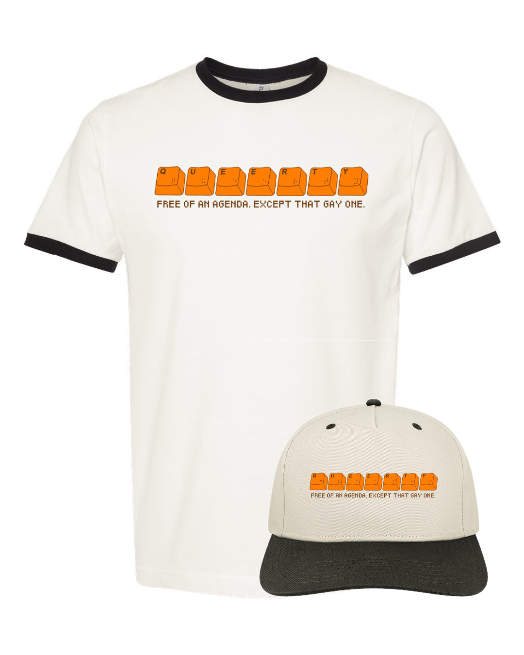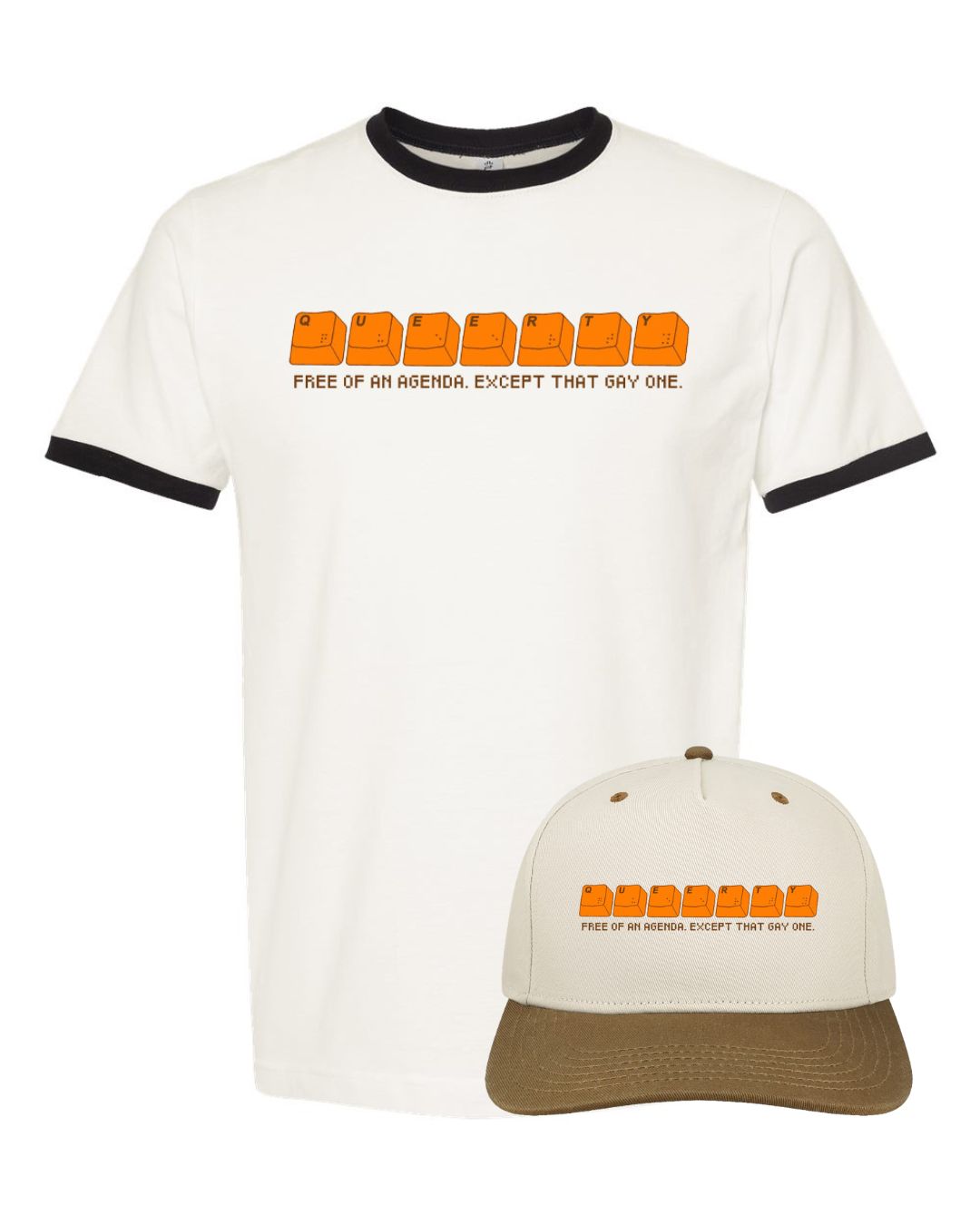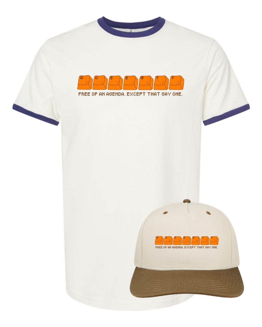 Two decades of queer news and culture deserve more than one way to celebrate—so why not both? Our 20th anniversary bundle lets you pair the retro ringer tee and heritage twill cap, both featuring Queerty’s original keyboard logo and our classic tagline: “Free of an agenda. Except that gay one.”