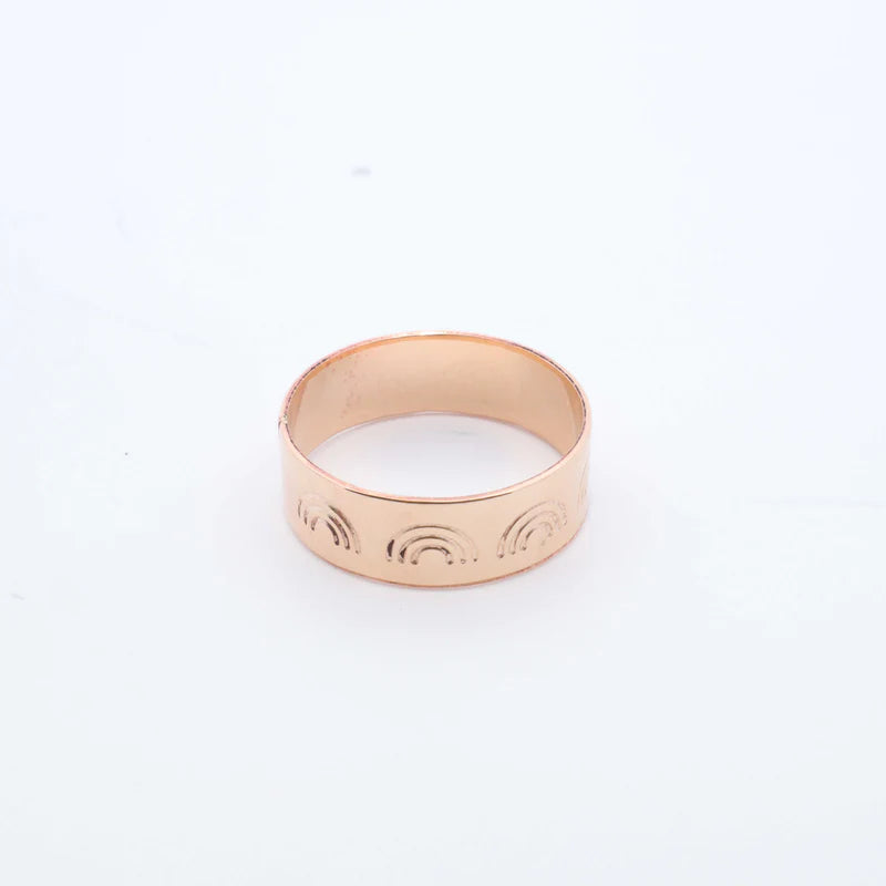This Rainbow Ring will make any outfit pop with its stamped rainbow design! A playful way to accessorize any wardrobe. Celebrate the power of the rainbow with this bright and eye-catching ring!