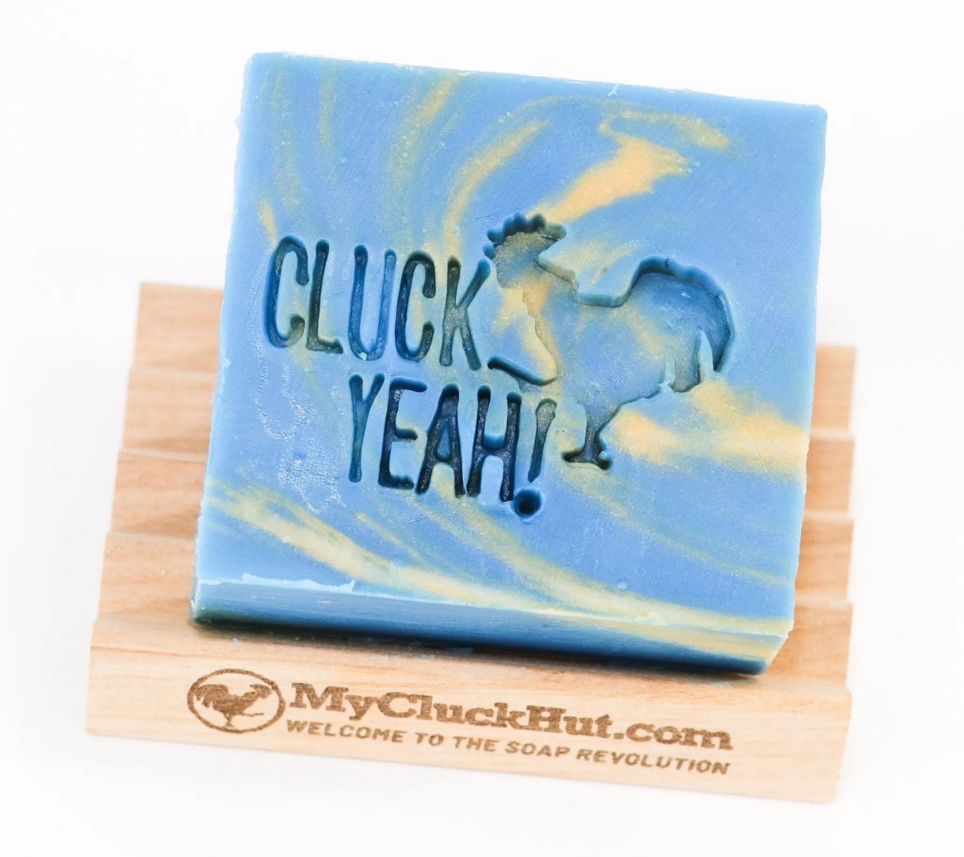 Allowing your Cluckin’ soap to dry out between uses is crucial to its longevity. A slatted soap dish will allow your soap to get air to it without holding water like a traditional soap dish.